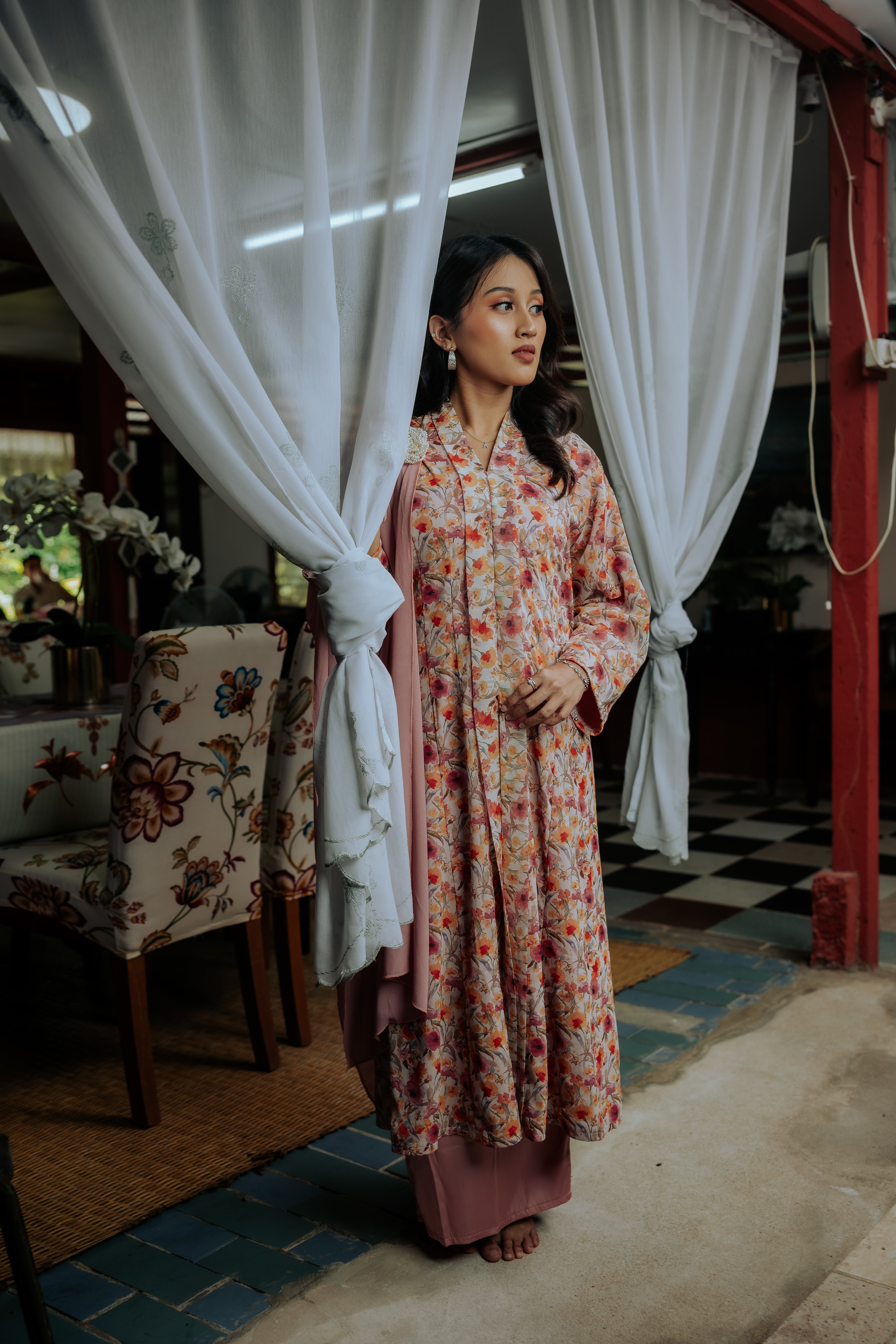 The top is made from embossed chiffon, adding delicate texture and refined elegance, while the satin skirt drapes gracefully for a seamless, polished look. Adorned with delicate patterns, subtle details, and a curated selection of stunning colours, Fatimah Kebaya is designed to leave a lasting impression. More than just an outfit, it’s a statement of elegance and confidence for those who appreciate timeless beauty.