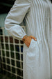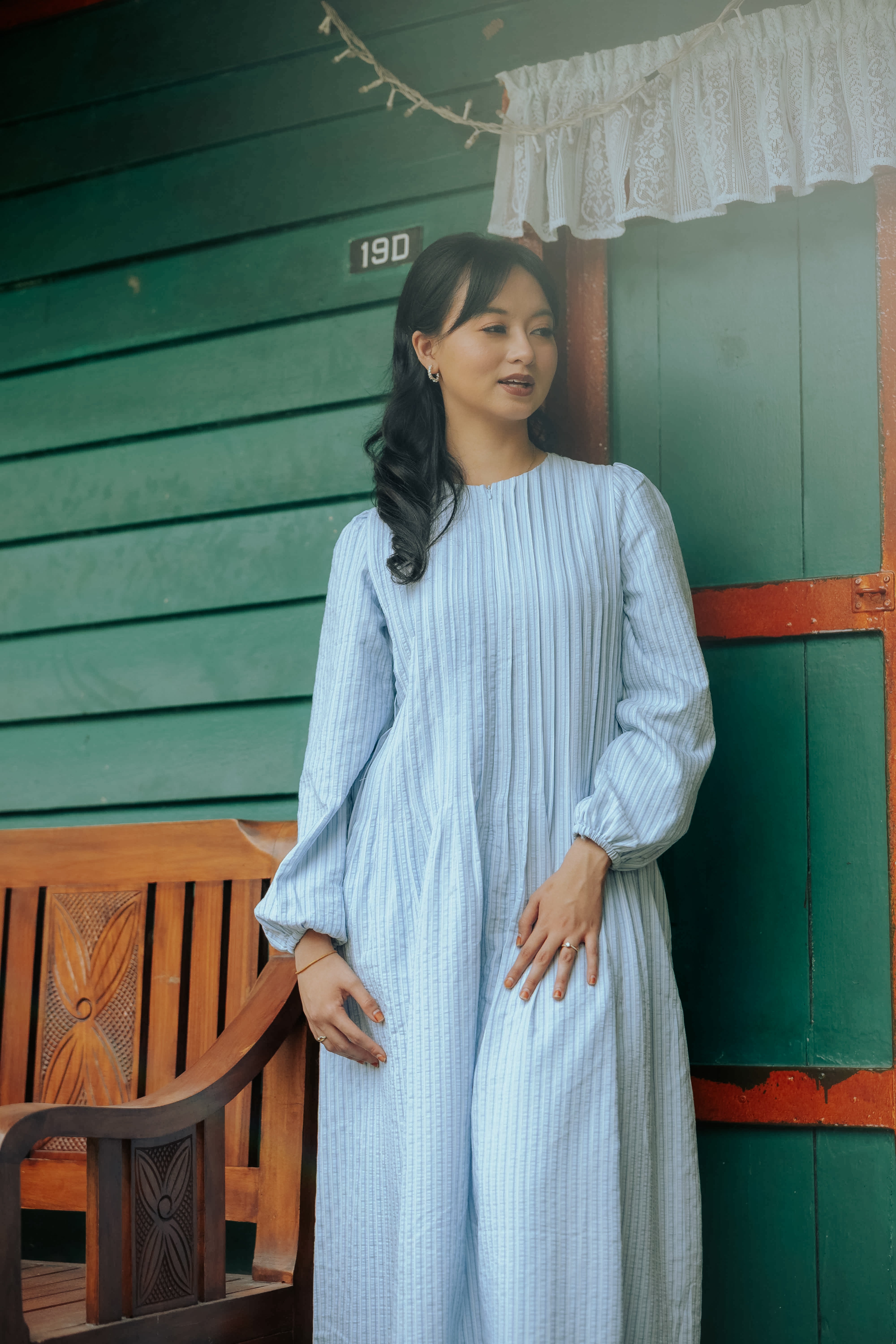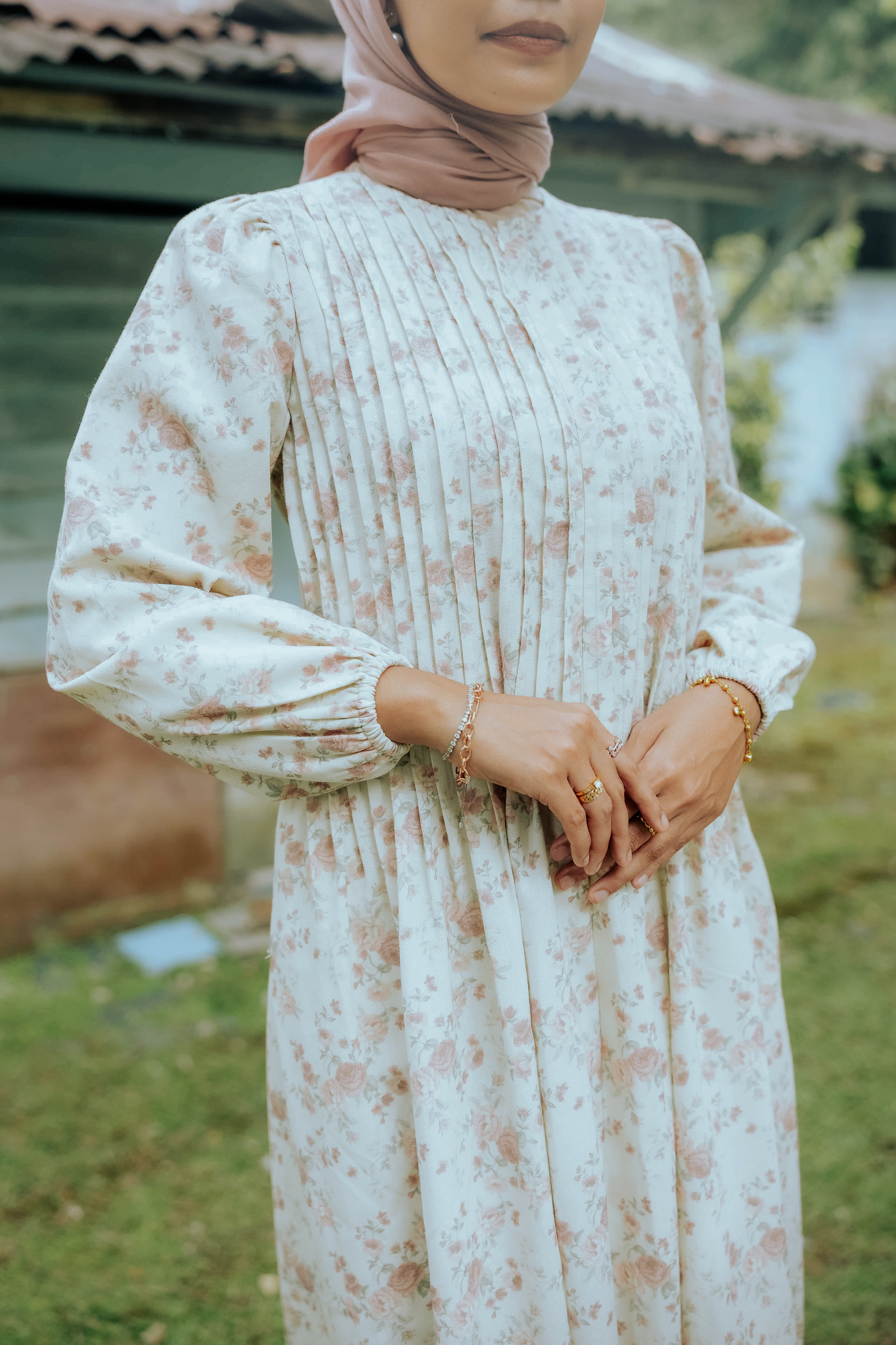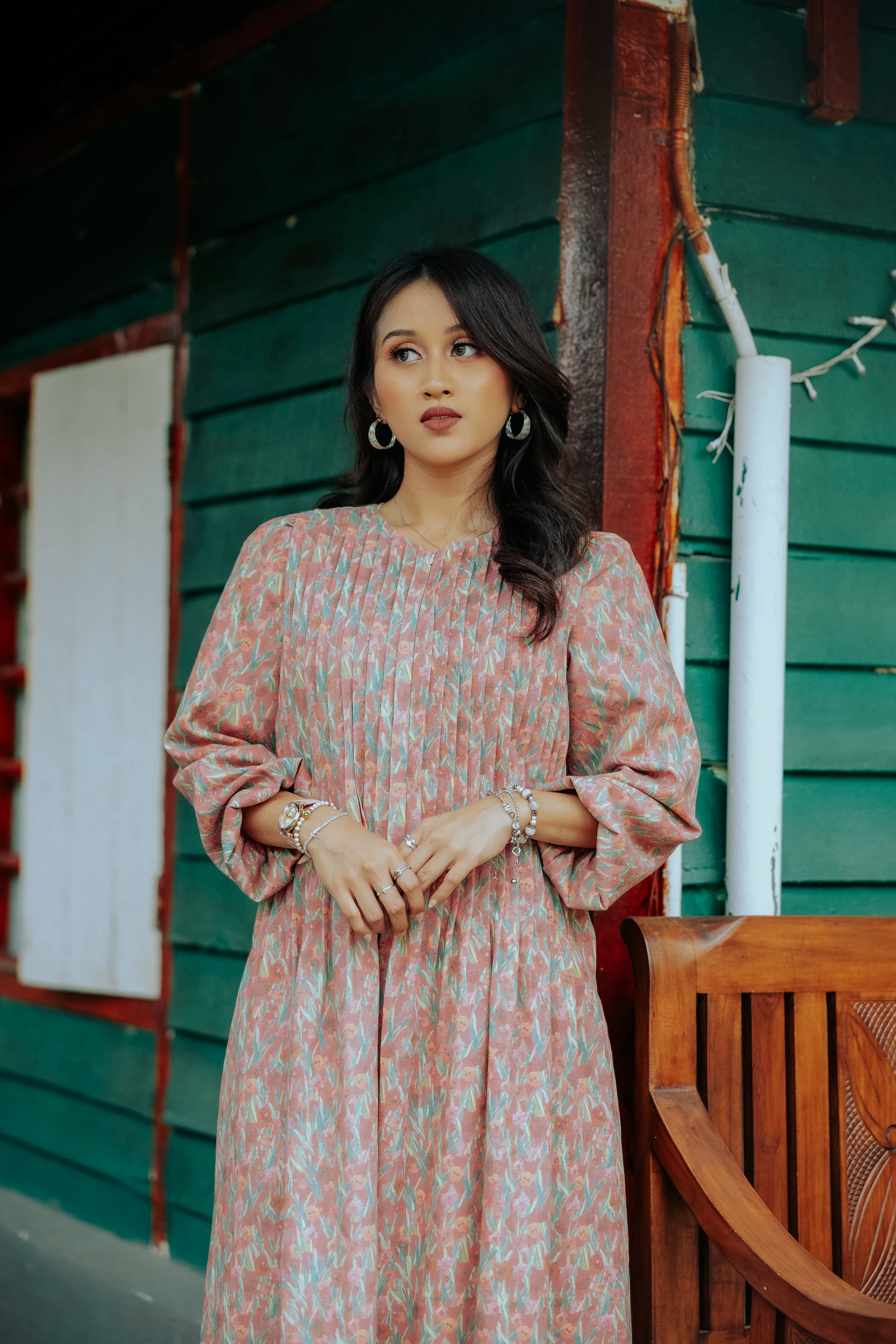 Designed with pleated detailing at the chest and a hidden front zipper for ease and comfort, Mabel blends practicality with timeless style. Its relaxed silhouette flows gracefully, exuding quiet sophistication while maintaining a modest charm.