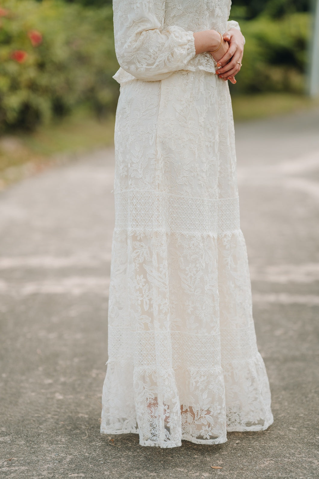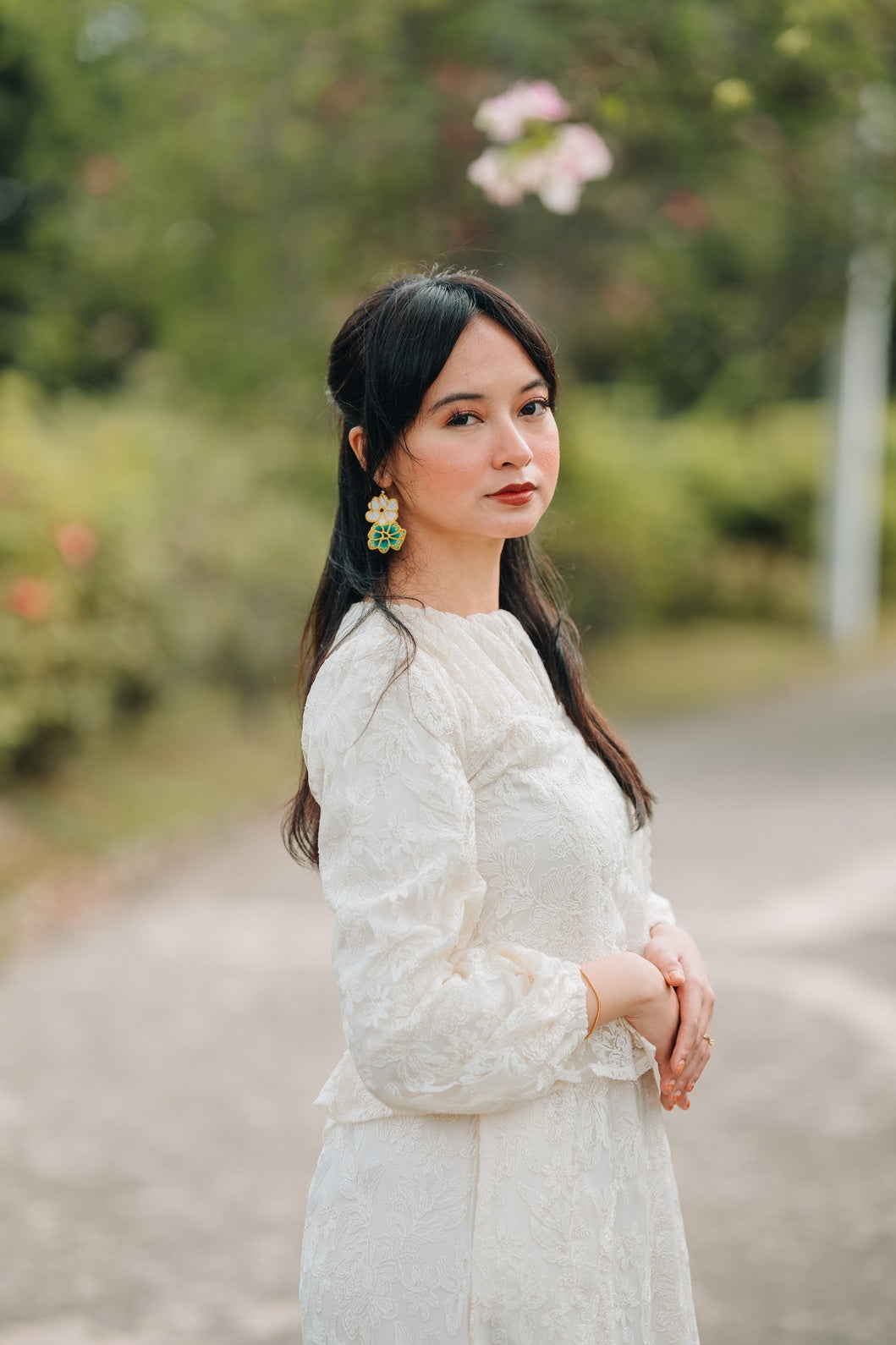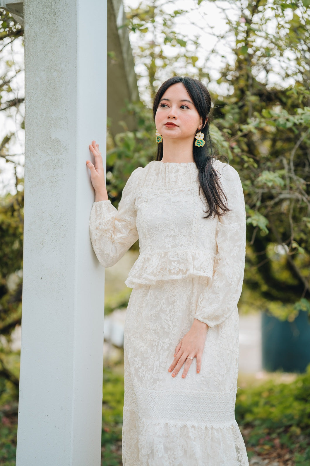 Crafted for timeless elegance, the Nuryn Lace Set features a delicate top and skirt ensemble made entirely from full embroidered lace, fully lined. Designed to embody soft femininity with a refined finish, this set offers graceful structure while remaining effortlessly romantic — perfect for intimate celebrations and elevated festive moments.