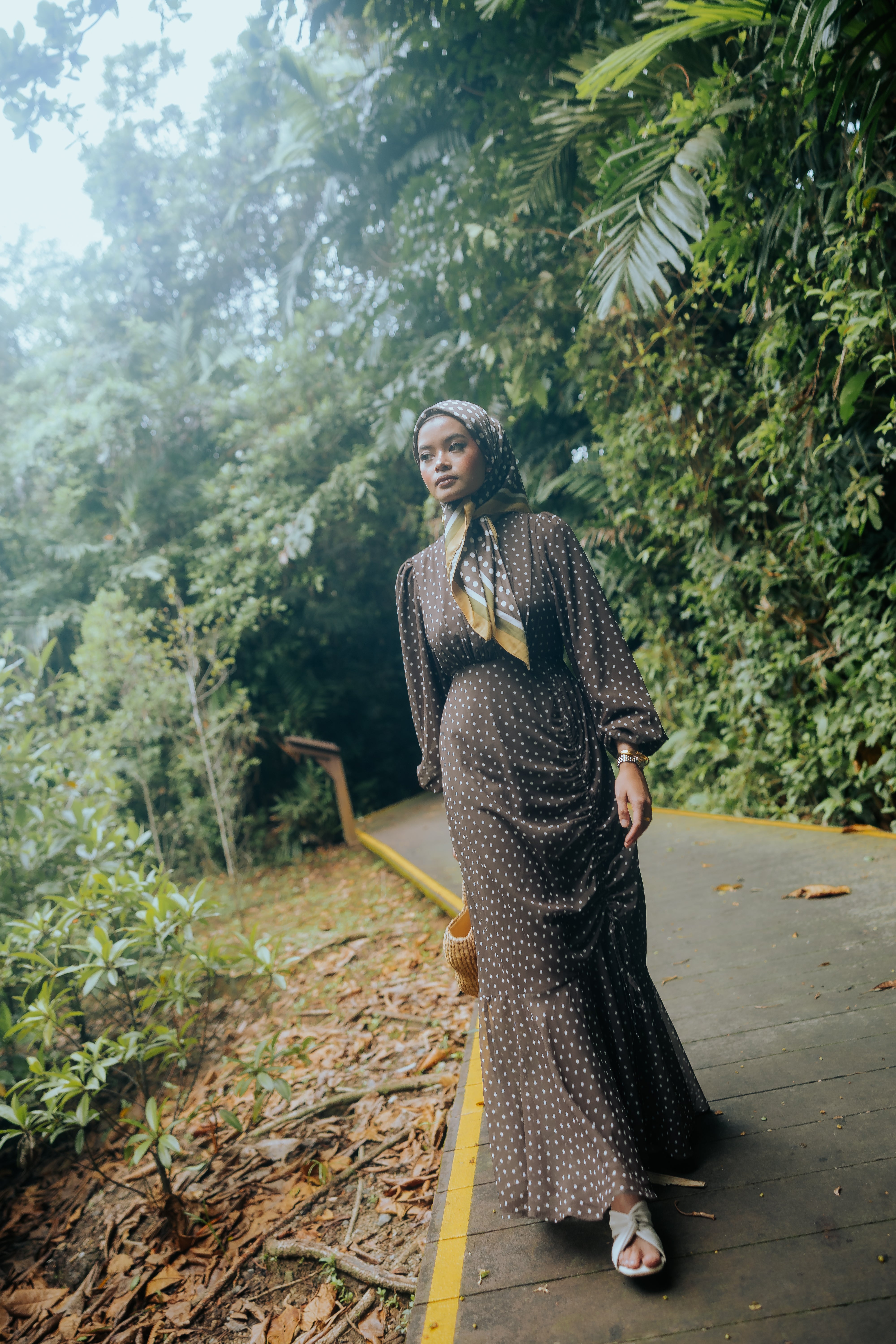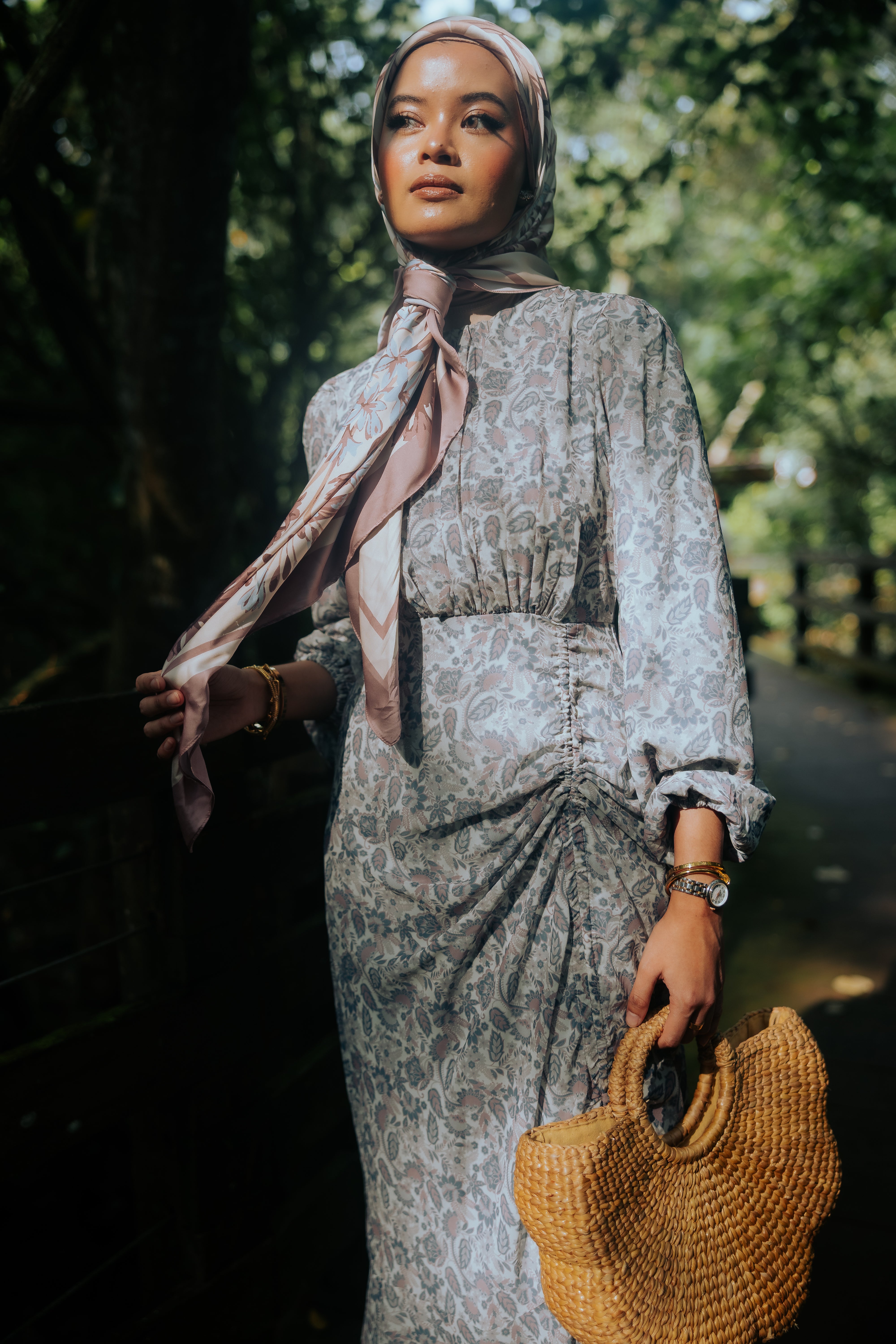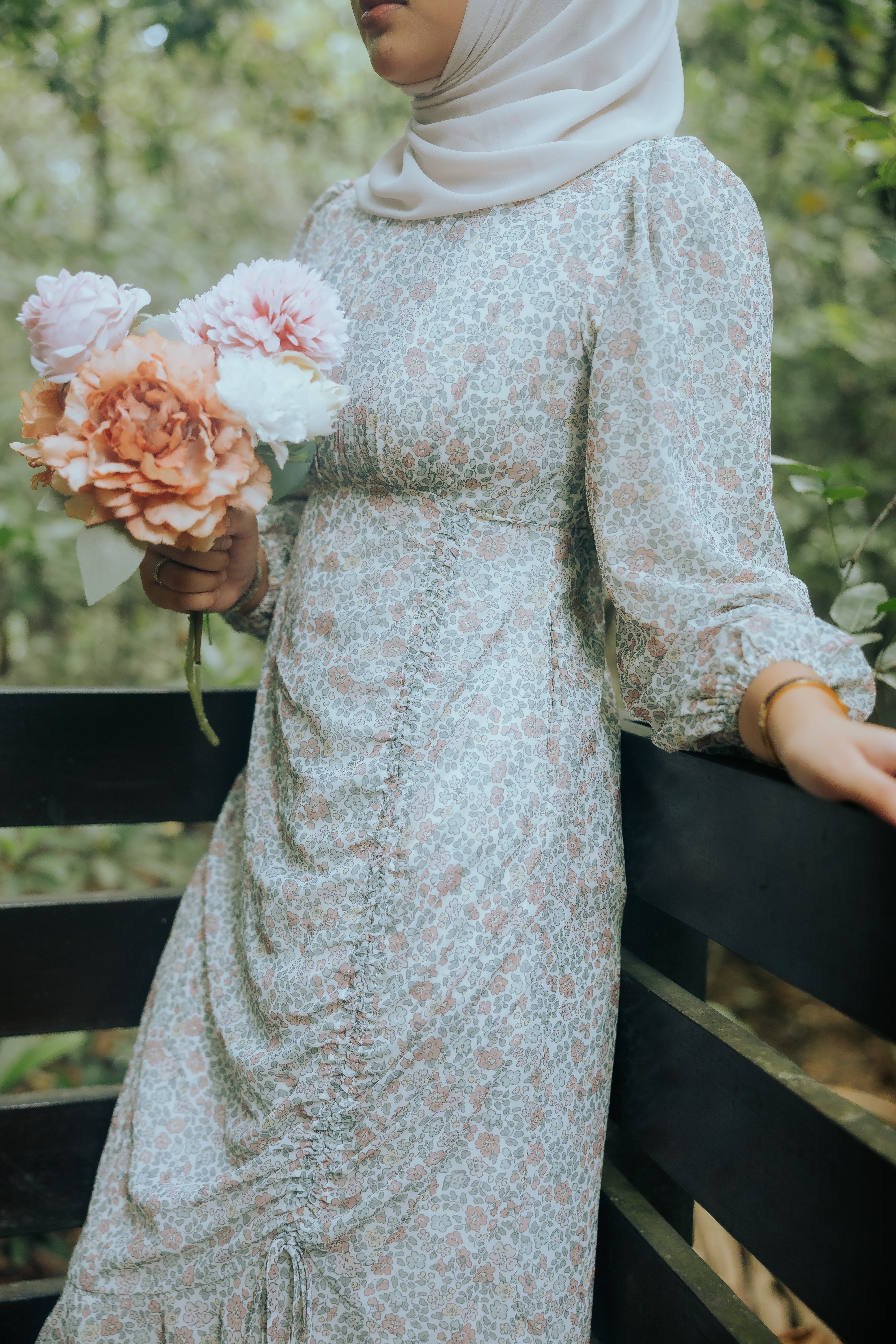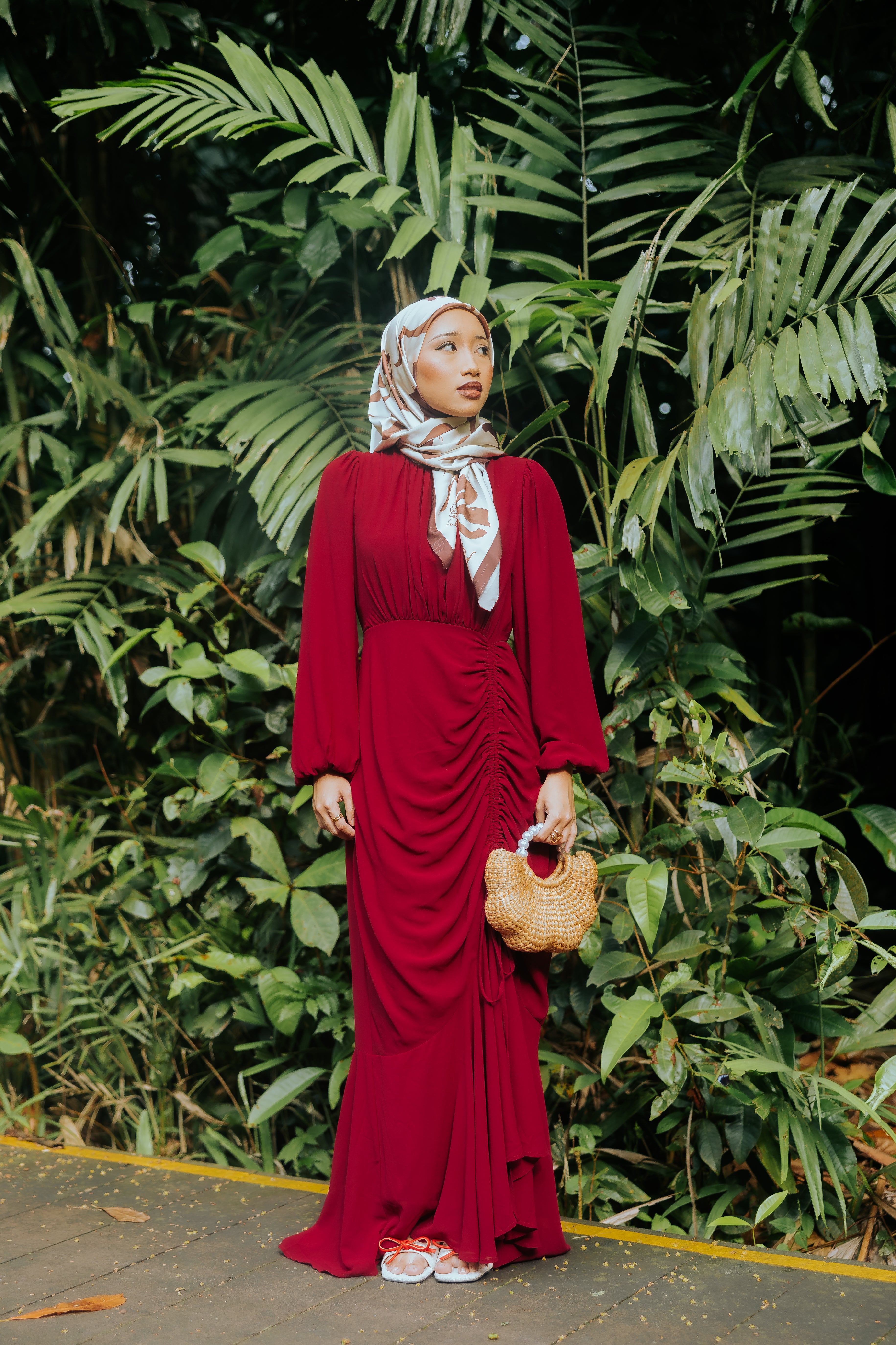 The signature rusching along one side sculpts gracefully, while the long sleeves and fishtail hem add movement to every step. A blend of comfort, confidence, and elegance ; loved by many, and now here again.