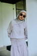 The top is crafted with trumpet sleeves for a graceful silhouette, paired with an adjustable hem that allows you to wear it tucked in, cropped, or loose depending on your mood. The smocked waistband skirt adds gentle stretch for a flattering fit that hugs comfortably at the waist before falling into a soft flow.