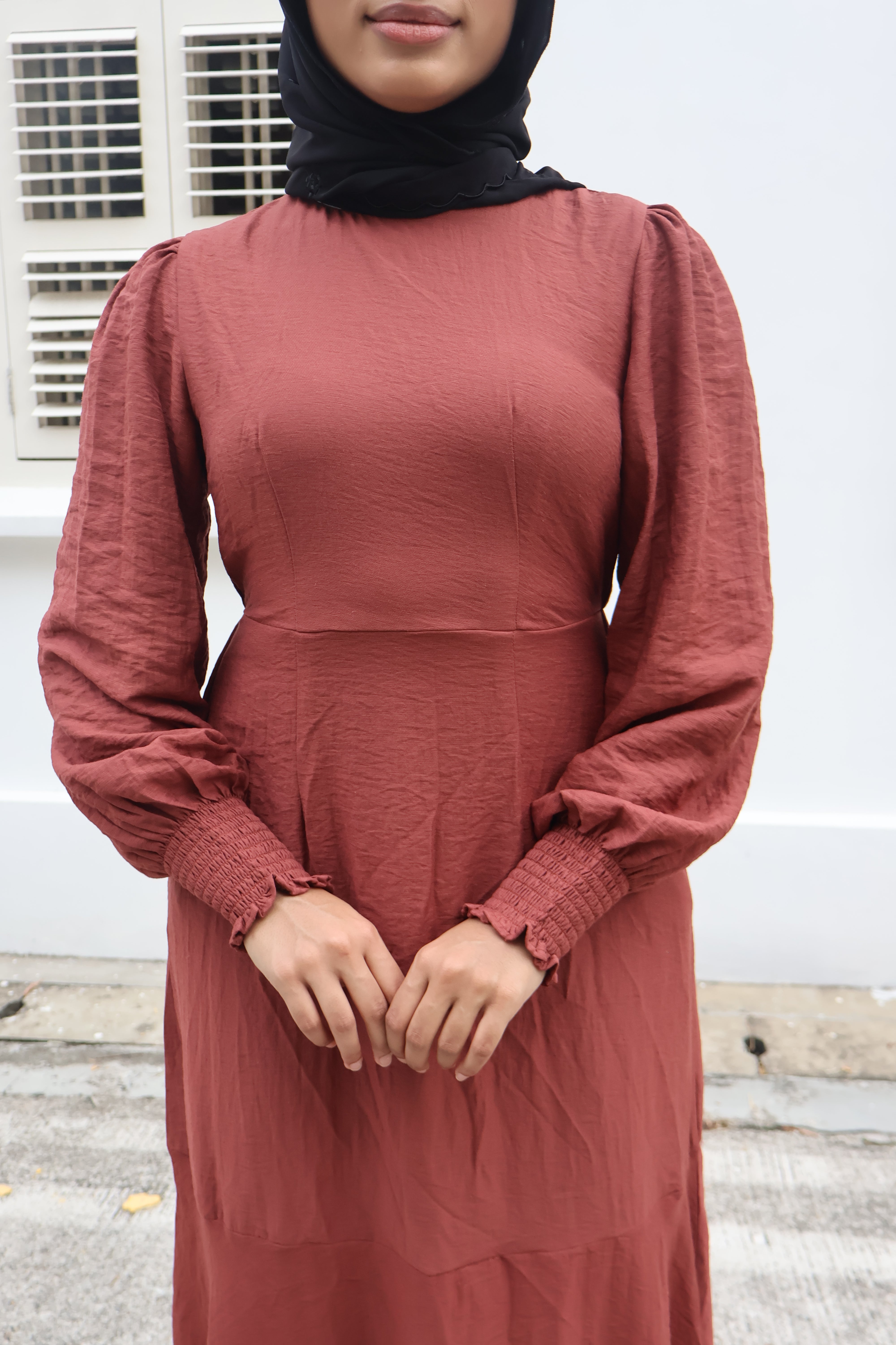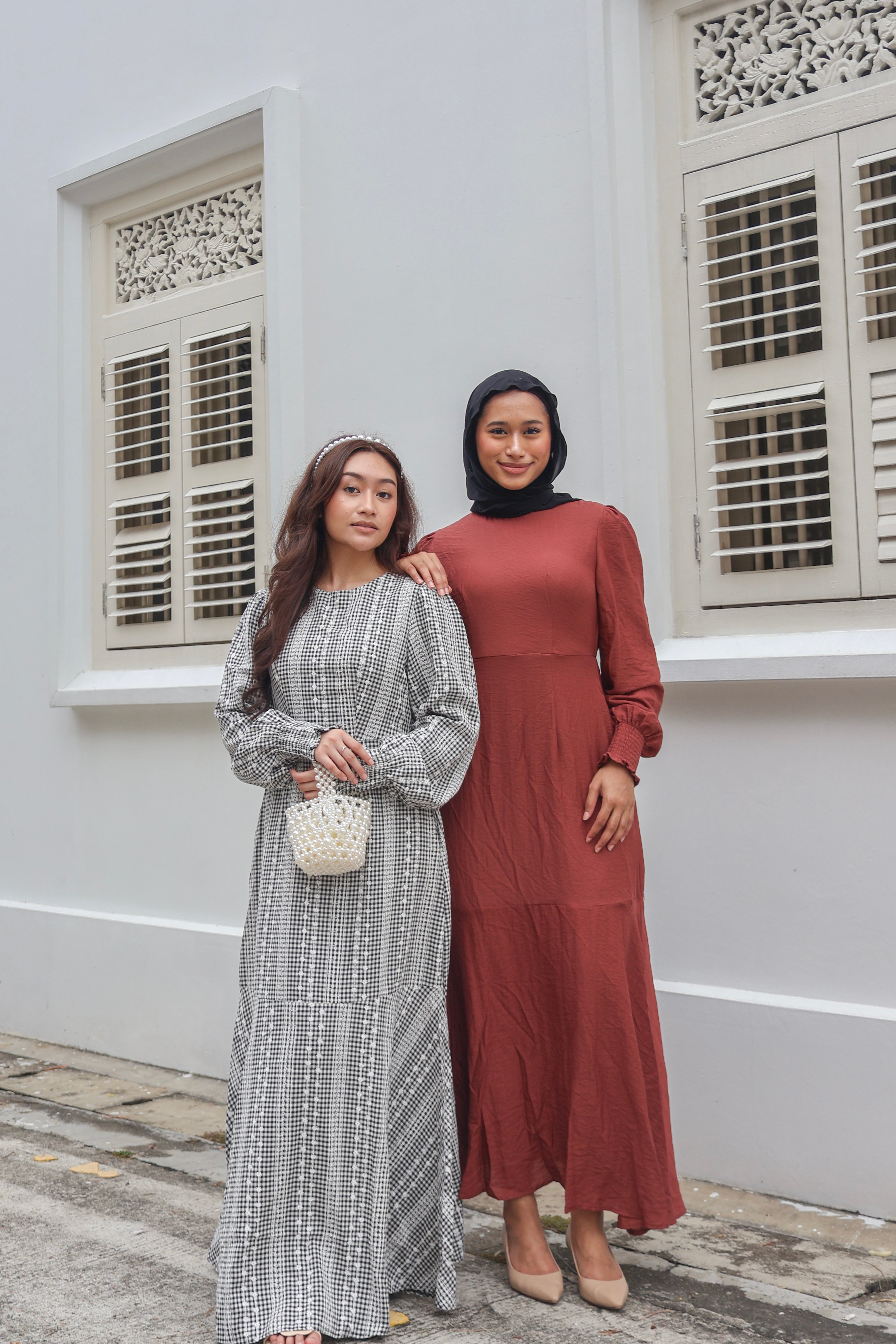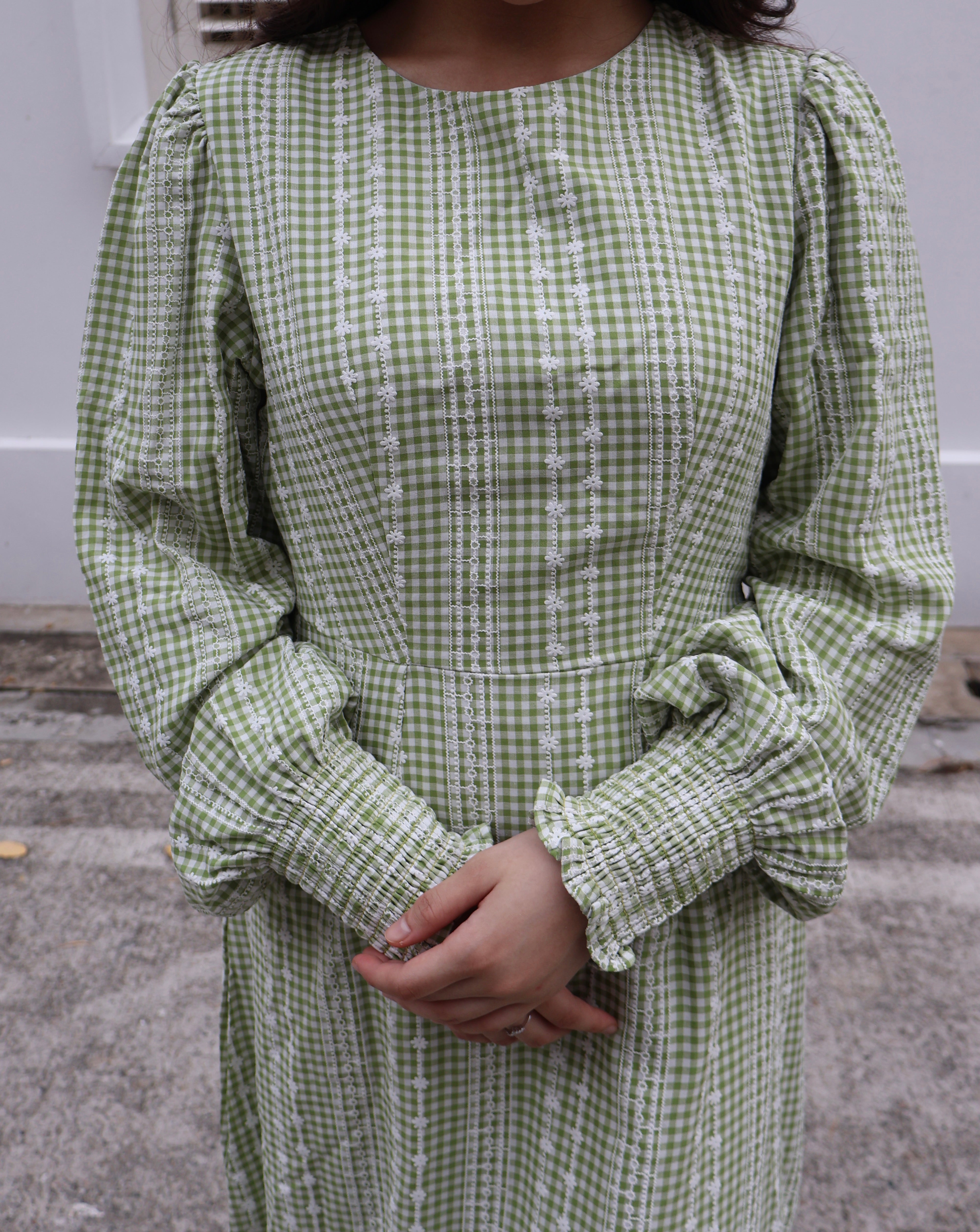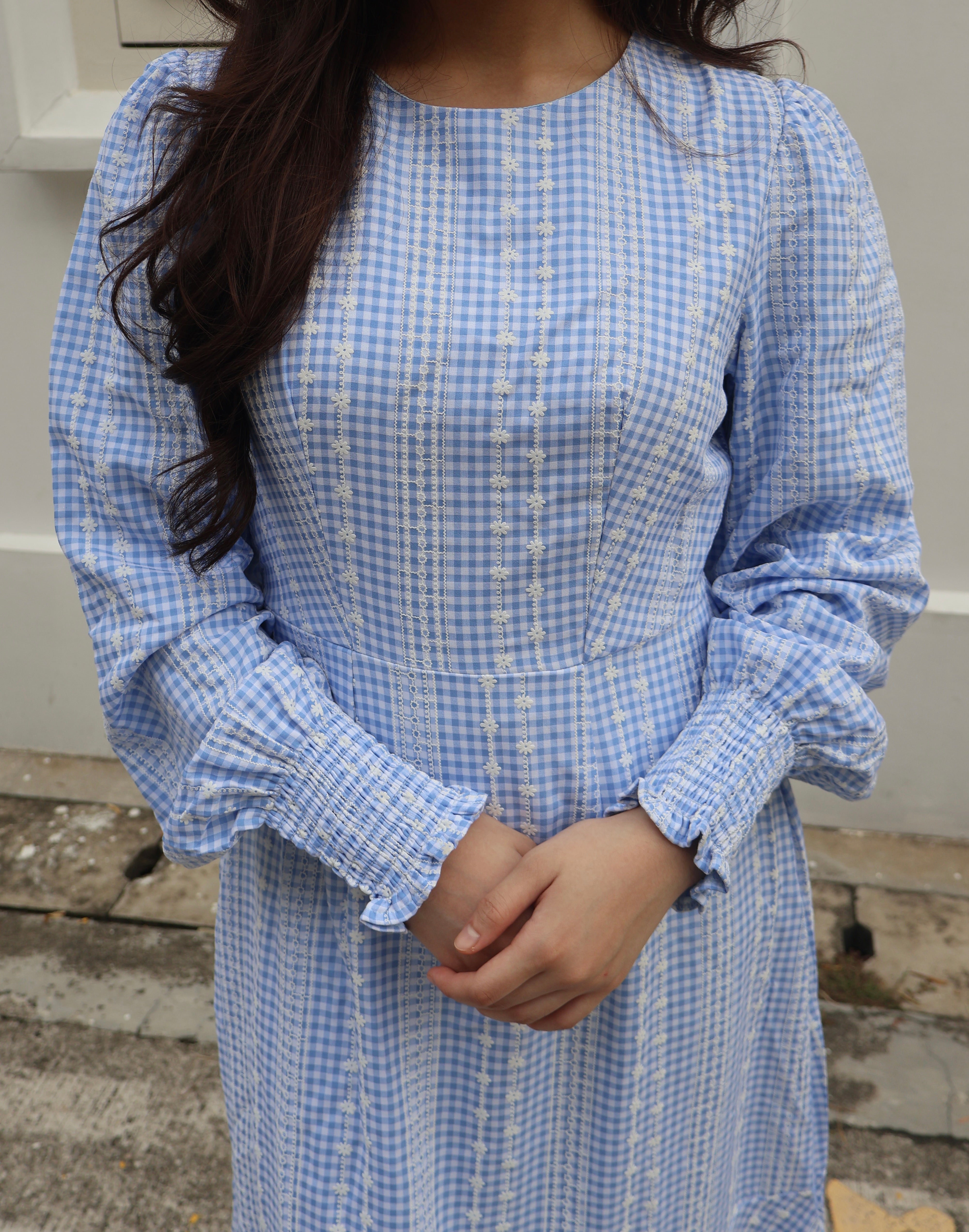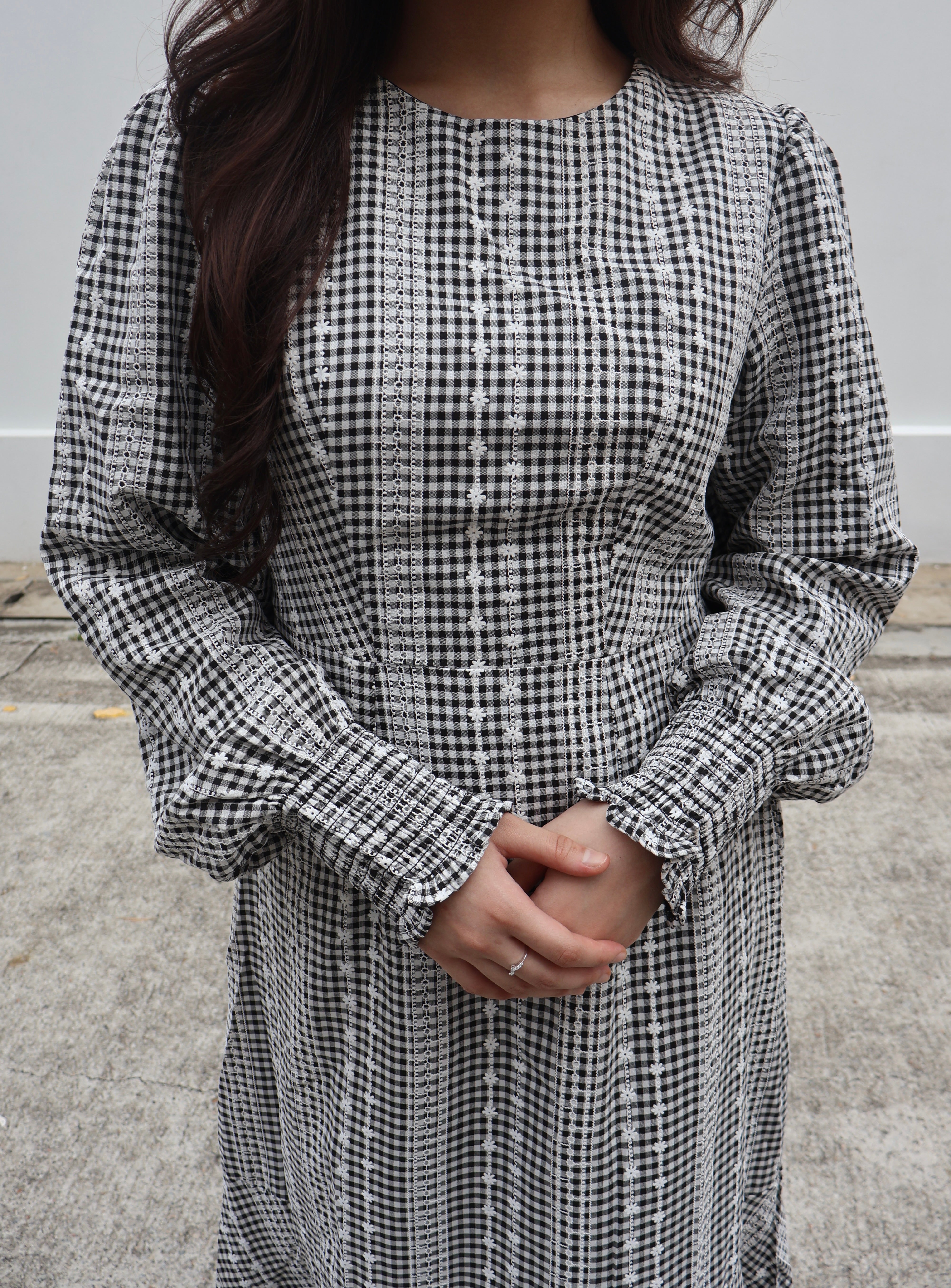This effortlessly stylish dress is available in 4 plain colours and 3 plaid prints, with delicate floral embroidery on the plaid designs. Featuring cuffed long sleeves for a polished look, the dress also includes a flattering cinched waistband that creates a defined silhouette. The bottom half has a subtle tiered design that adds graceful movement and flow, making the dress both comfortable and unique. The lightweight, breathable fabric adds to its comfort, making it perfect for both casual and semi-formal occasions. With its flowy skirt and modest round neckline, this dress is versatile and chic, offering timeless elegance with modern details.