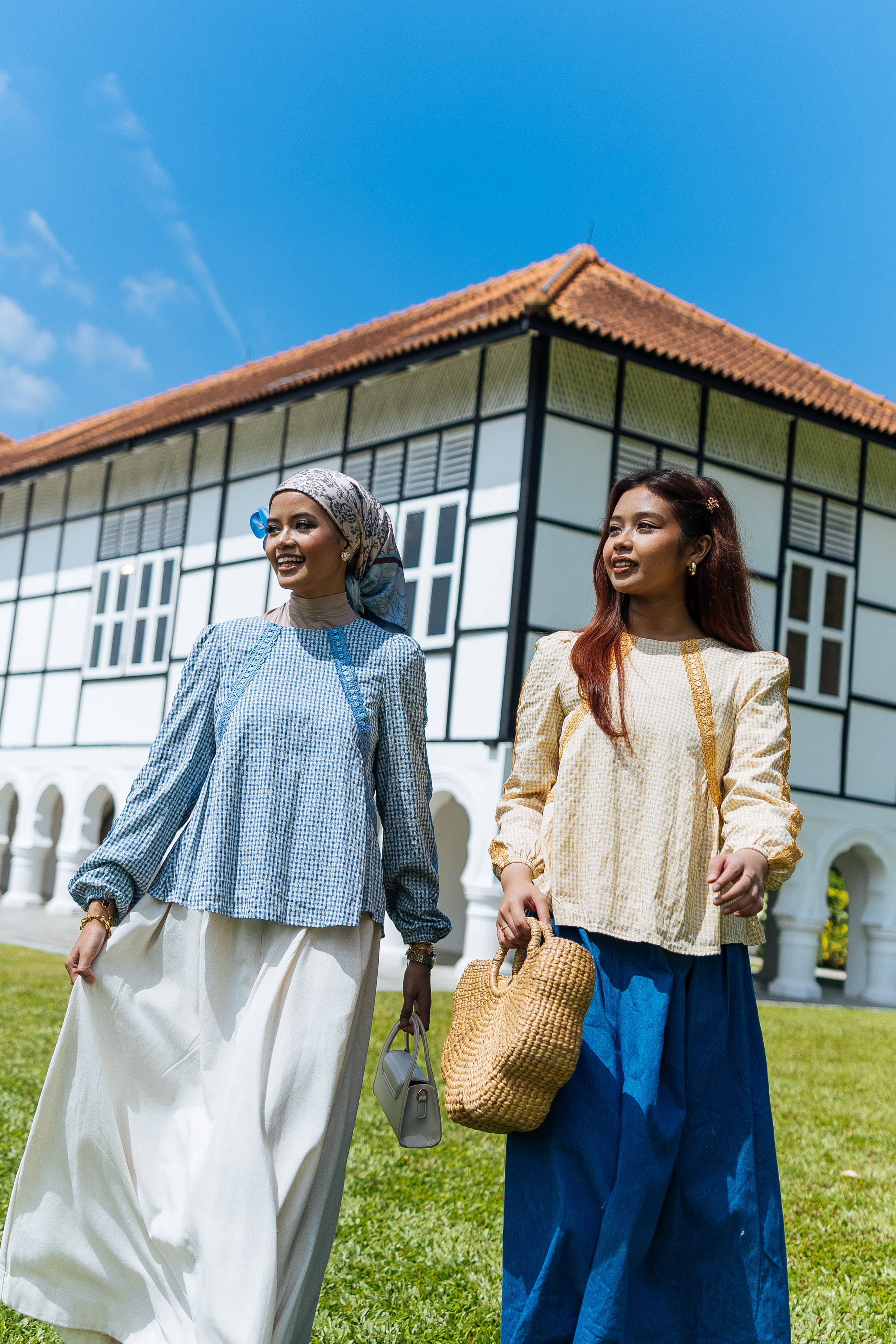 Material: Soft gingham fabric with small floral motifs