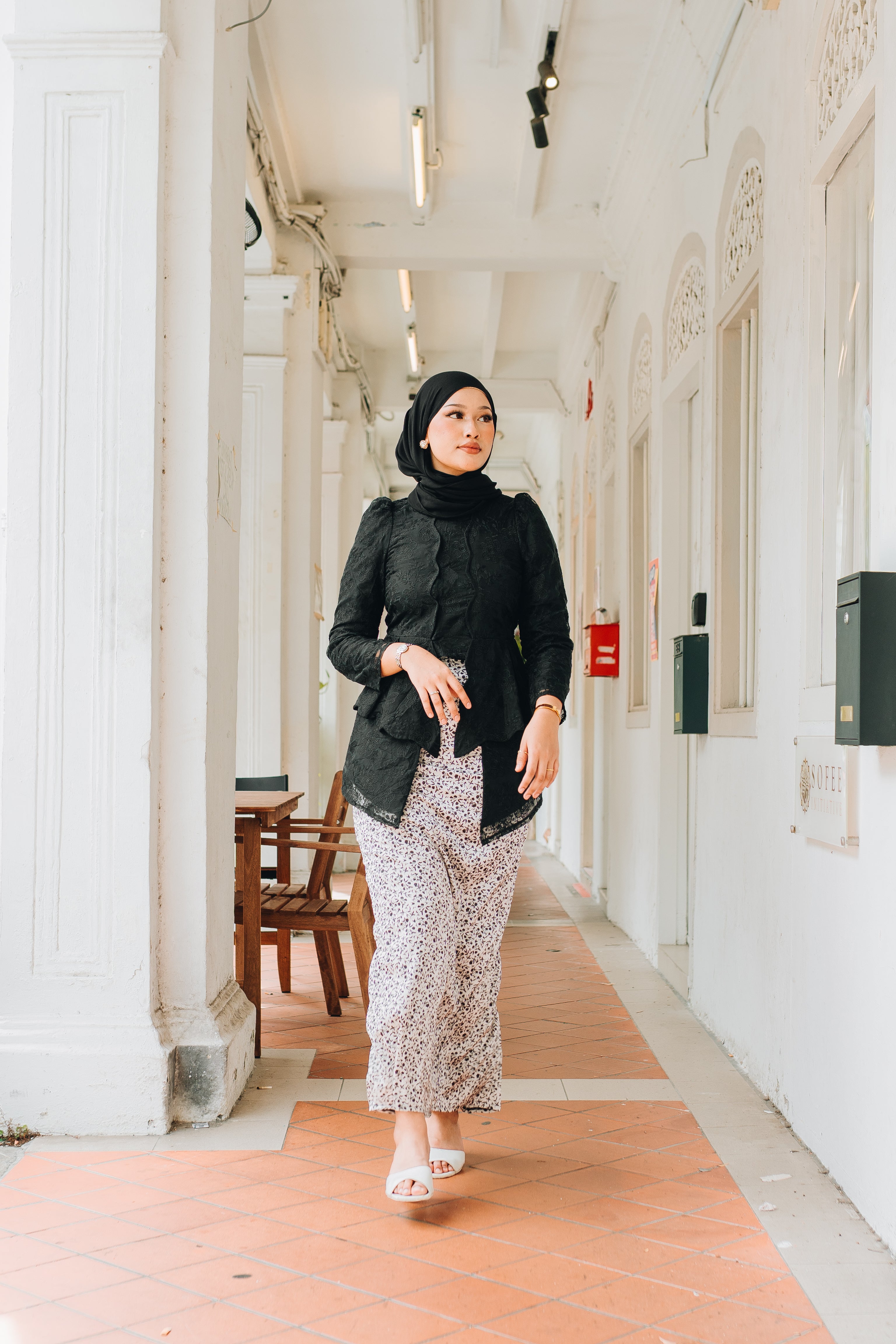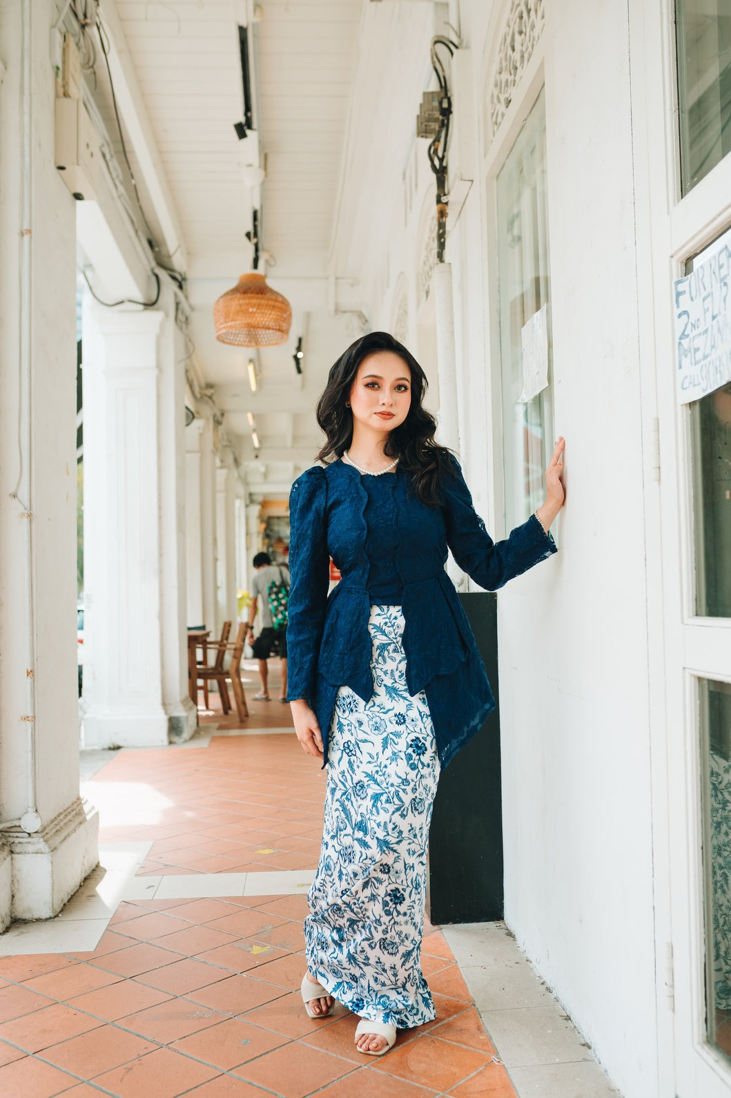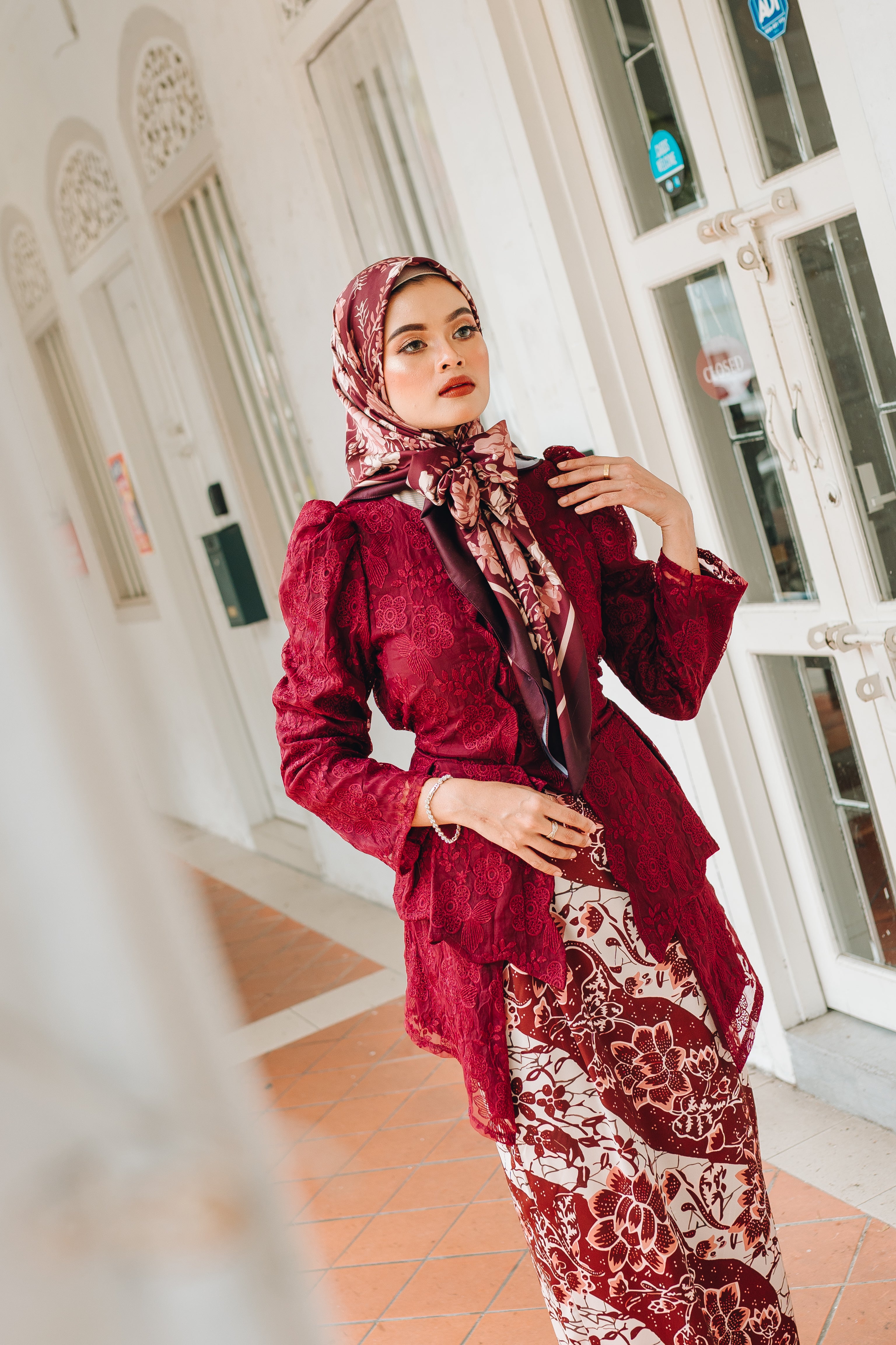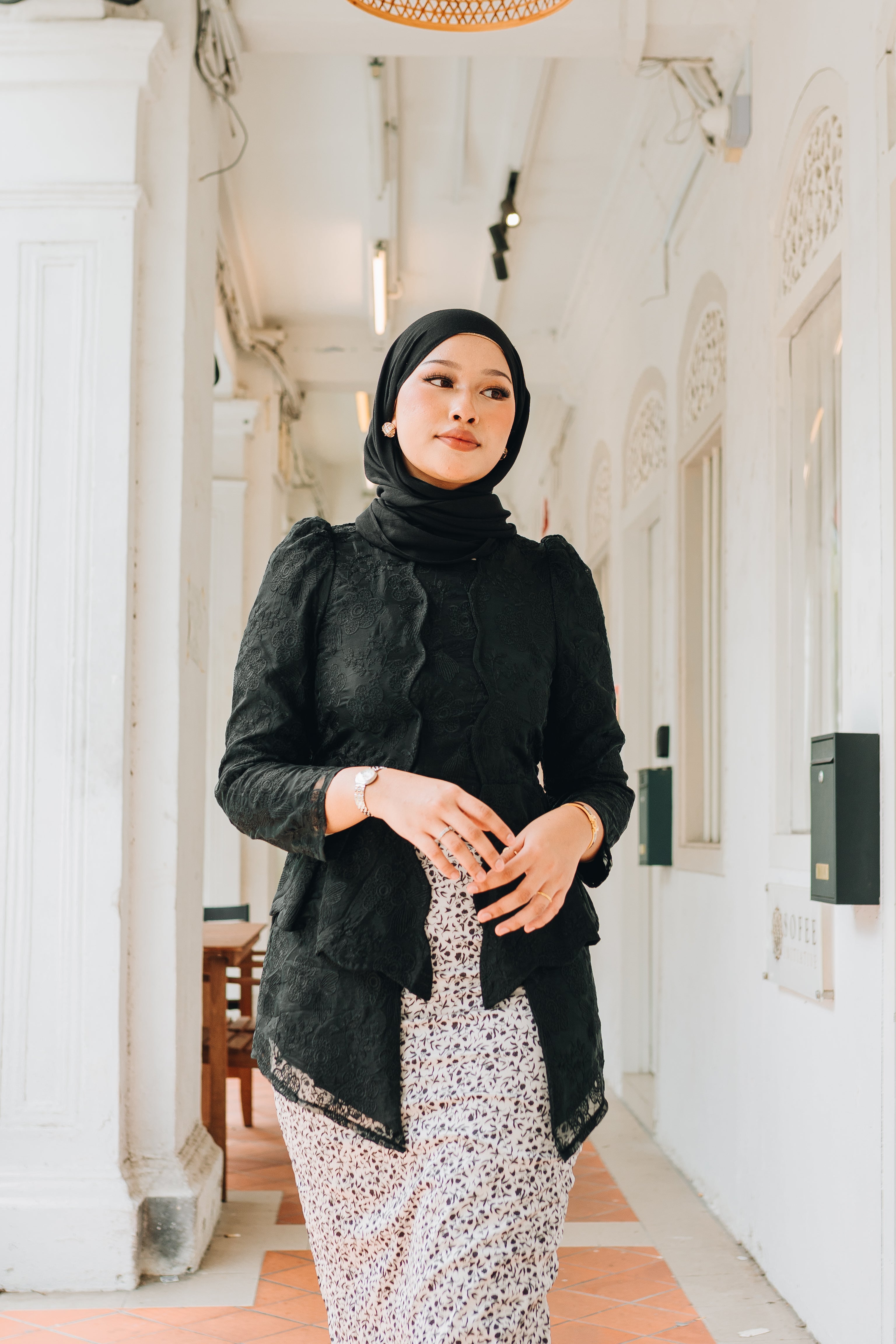 A modern classic with timeless charm, the Zaiton Kebaya is introduced as part of our Alunan Raya – 4th Drop, celebrating grace, heritage, and thoughtful design. The kebaya top is crafted from delicate lace eyelet material and fully lined for a polished yet comfortable fit. It is paired with a flowing printed satin skirt that adds movement and softness to the silhouette.