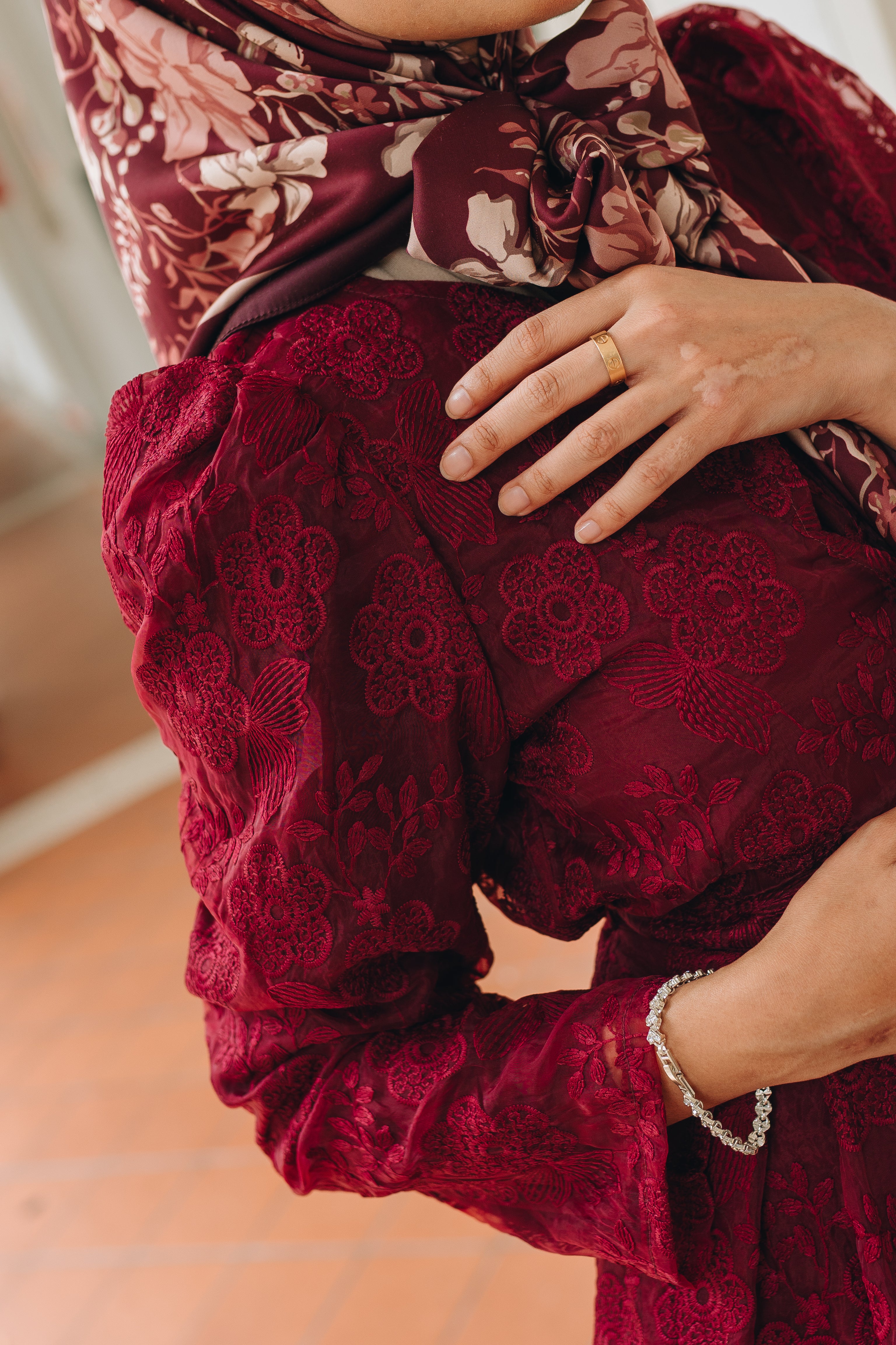 Designed with versatility in mind, Zaiton comes with a detachable sash to cinch in the waist for a more defined shape or worn loose for an effortless look. Nursing-friendly snap buttons at the front ensure ease and practicality without compromising elegance—perfect for festive days and beyond.